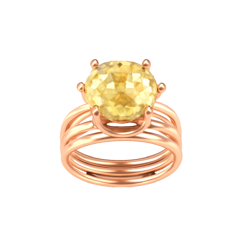 Ring "Crown" in Gelbgold mit Zitronenquarz, Grösse 54