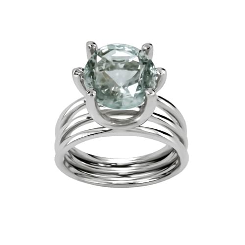 Ring "Crown" in Weissgold mit Grünem Quarz, Grösse 53